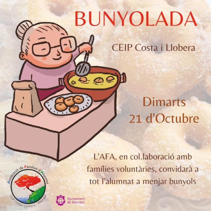 Demà preparam bunyols a l’escola!! Hi haurà també bunyols adaptats per als infants amb intoleràncies o al·lèrgies alimentàries ☺️